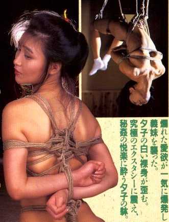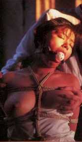 画像左)では乳首に股縄と結ばれたゴム紐付きクリップを装着され、苦痛に耐えた。苦痛責め、色責め両方に対して色っぽい反応を示す貴重な女優だが、主演作が2本だけというのは寂しい。